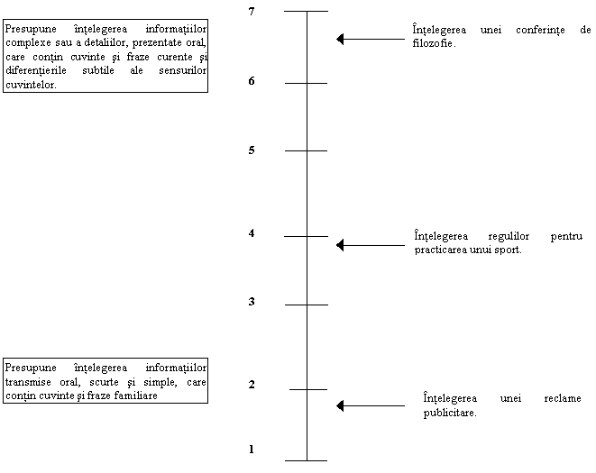 Întelegerea limbajului oral (1) si întelegerea limbajului scris (2): presupune întelegerea de cuvinte si fraze în româna scrise sau rostite. |
