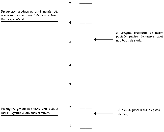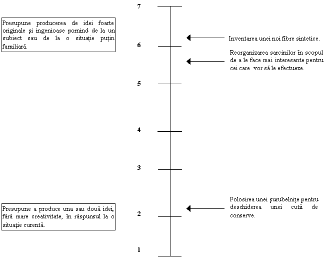 Originalitatea ideilor (6): presupune producerea de raspunsuri creative si novatoare pornind de la o problema data, si nu întelegerea acestora de altii. |