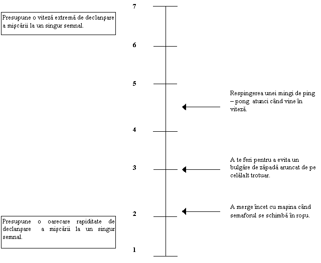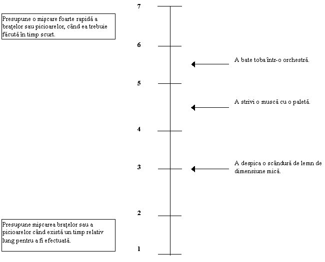 Rapiditatea miscarilor membrelor (31): presupune rapiditatea de miscare a unui singur brat sau picior, si nu se refera la coordonare. |