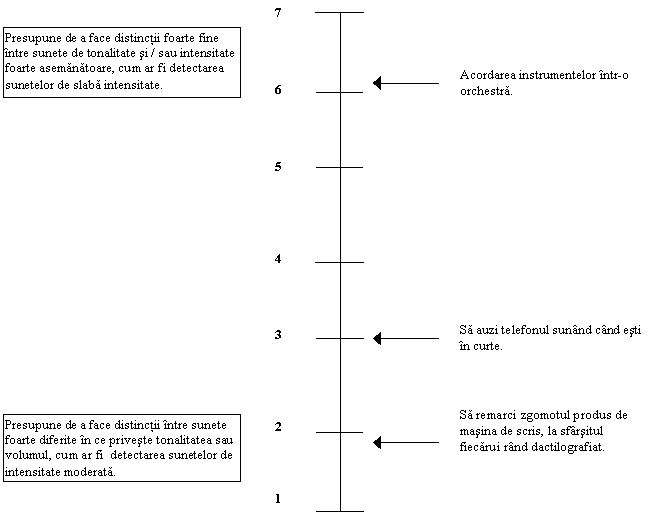 Sensibilitatea auditiva (48): presupune discriminarea între diverse sunete. |