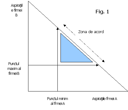 Zona in care cele doua firme pot sa negocieze un acord poarta numele de zona de acord, ea reprezentând aria descrisa de suma sub care firma A nu poate încheia un contract la calitatea solicitata si suma maxima pe care o poate oferi firma B pentru serviciile solicitate.