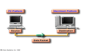 Toate comunicatiile intr-o retea isi au originea la o anumita sursa si apoi calatoresc catre o anumita destinatie .Informatia care circula in retea se numeste data , pachet sau pachet de date. Adresa sursei e un pachet care specifica identitatea calculatorului emitator . Adresa de destinatie specifica identitatea calculatorului care va receptiona pachetul .