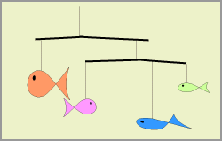 Acesta este un exemplu concludent de cum functioneaza un sistem; daca un singur peste se misca, cel putin un alt peste va reactiona miscandu-se la randul lui. Astfel, cea mai mica adiere va mentine mobilul in miscare continua.