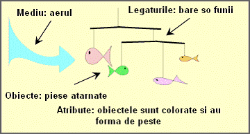 Ideea de sistem este bine ilustrata de imaginea de mai jos numita un "mobil". Componentele sistemului, sau obiectele - cum sunt numite de obicei- sunt "pesti". Relatiile sunt reprezentate prin bare, care stabilesc pe orizontala un spatiu intre pesti, si bucatiile de sfoara verticale care mentin pestii la adancimi diferite.