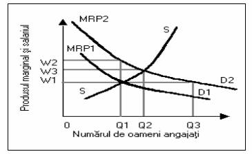 Figura 2.2 Efectul unei modificari a productivitatii marginale a muncii