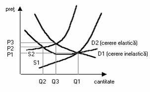 Elasticitatea cererii pentru munca si cererea pentru produsul final. Furnizorul care acorda o crestere a salariilor trebuie sa mareasca preturile consumatorilor. Asta inseamna ca la fiecare valoare a pretului, cantitatea disponibila va fi mai mica si ca s-a produs o modificare a conditiilor ofertei. Diferitele efecte asupra vanzarii produselor pentru care cererea este inelastica, sunt aratate in Figura 2.3.