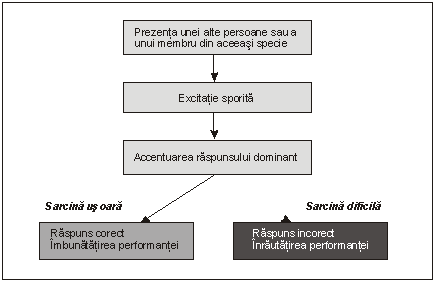 Calitatea performantei unui individ variaza în functie de natura sarcinii de îndeplinit. Atunci când sarcina este usoara (întrucât presupune operatii simple si bine învatate), raspunsul dominant este, de regula, îndeplinirea sarcinii cu succes. Dar daca sarcina e dificila (deoarece implica operatii complexe, cu care subiectul nu este pe deplin familiarizat), raspunsul dominant este, cel mai adesea, incorect, ducând la un esec partial sau total (vezi Figura 7.1).