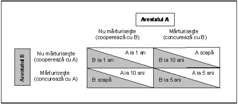 Se pare ca indiferent ce ar face Prizonierul B, iesiti în avantaj daca optati pentru competitie, depunând marturie împotriva lui B. În ipoteza ca B tace din gura (cu alte cuvinte, daca el alege sa coopereze), obtineti o condamnare mai usoara depunând marturie împotriva lui (optând, asadar, pentru competitie) decât daca ati tacea: daca depuneti marturie, scapati de închisoare; daca nu depuneti marturie, va alegeti cu o condamnare pe un an. În ipoteza ca B depune marturie împotriva dumneavoastra, acuzându-l scapati cu o condamnare de cinci ani, pe când daca pastrati tacerea veti înfunda puscaria timp de zece ani. Prin urmare, trebuie sa depuneti marturie împotriva lui B - e cât se poate de clar, nu? Aici apare însa dilema: daca amândoi depuneti marturie, fiecare se alege cu câte cinci ani de închisoare. Daca nici unul nu depune marturie, fiecare scapa cu un singur an. Este într-adevar o situatie care ne lasa într-o stare de perplexitate. Dumneavoastra ce credeti ca ati face?
