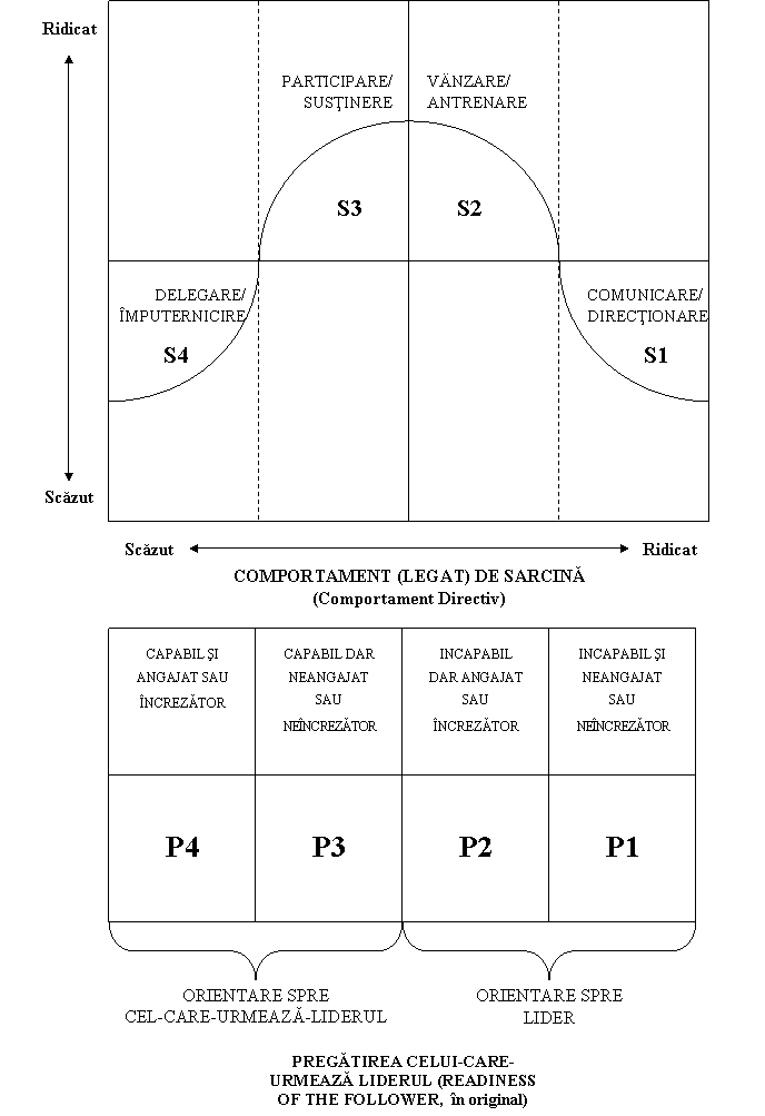 Linia curba ce parcurge cele 4 stiluri de leadership (asa cum e reprezentata in schema) reprezinta combinatiile cu cel mai inalt nivel de probabilitate dintre comportamentul (legat) de sarcina si cel relational. Aceste combinatii corespund nivelurilor de pregatire (readiness) ce se situeaza grafic sub ele. Pentru a utiliza modelul, se identifica punctul din continuumul pregatirii ce reprezinta nivelul de pregatire al celui-care-urmeaza-liderul referitor la indeplinirea unei anumite sarcini, punct din care se traseaza o linie perpendiculara pana in punctul de intersectie cu linia curba ce reprezinta comportamentul liderului. Acest punct indica cel mai adecvat comportament (legat) de sarcina si comportament relational pentru situatia in cauza.