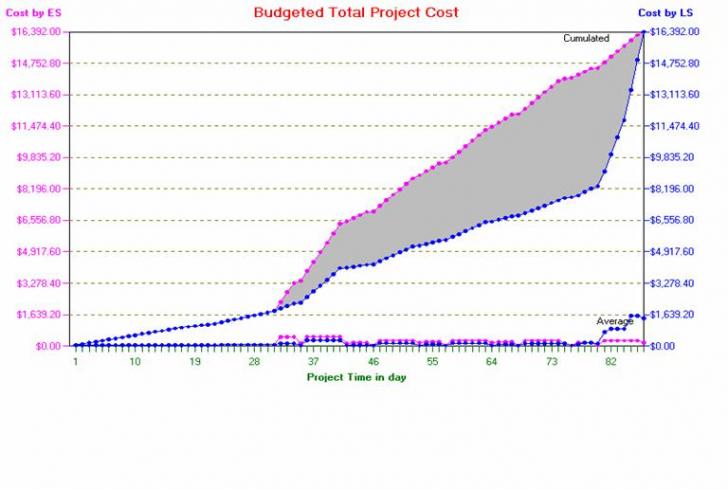 Programul permite si evidentierea termenelor minime si maxime de incepere, respectiv de terminare. Costul activitatilor care formeaza drumul critic este de 9632 $. Intarzierea activitatilor care se afla pe parcursul acestui drum va duce la o depasire a costurilor acestor activitati.