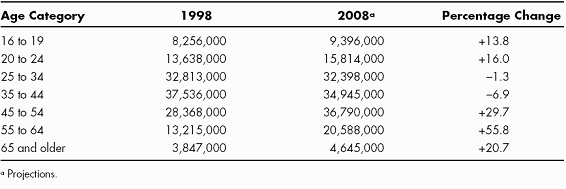 93. Greller and Nee. “Baby Boom and Baby Bust: Corporate Response to the Demographic Challenge of 1990– 2010”; American Association of Retired Persons. The Aging Work Force: Managing an Aging Work Force, 1990; Machan, Dyan. “Cultivating the Gray,” Forbes (September 14, 1989): 127–28; Morrison, Peter A. “Applied Demography: Its Growing Scope and Future Direction,” The Futurist 24, no. 2 (1990): 9–15; Fest, Glen. “Ready, Willing and Able,” Fort Worth Star- Telegram (May 9, 2000): 1C–3C; Mergenhagen, Paula. “Enabling Disabled Workers,” American Demographics 19 (July 1997): 36–42; “No End in Sight for Tight Labor Markets, Upward Pressure on Wages,” Compensation and Benefits Review 31, no. 5 (1999): 23–26.