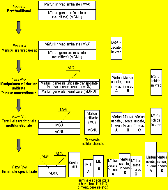 Dezvoltarea porturilor a fost delimitata in diferite faze care sunt prezentate sintetic in figura urmatoare: