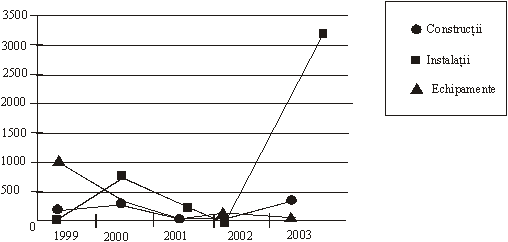 În anii 1999 - 2003 s-au înregistrat iesiri de mijloace fixe (vânzari sau casari) - milioane lei.