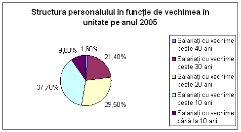 Numarul de salariati cu vechime de peste 10 ani în anul 2004 fata de 2003 creste cu 42 de salariati, iar în anul 2005 fata de 2004 creste cu 10 salariati.