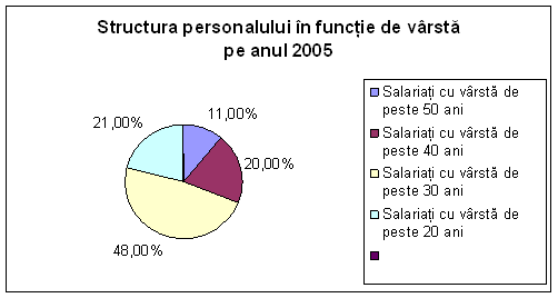 Fig. 4. Structura personalului în functie de vârsta pe anul 2005