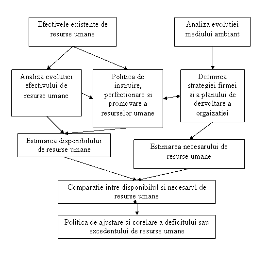 Un model de planificare a resurselor umane cu etapele ce trbuie parcurse poate fi observat in diagrama de mai jos: