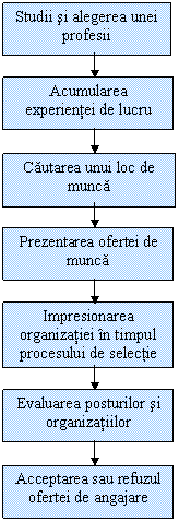 Candidatii care cauta sa se angajeze sunt angrenati într-un set paralel de activitati - mai întâi, dobândirea de experienta; apoi, cautarea unui post satisfacator, prin diferite metode; în cele din urma, candidatul îsi va manifesta disponibilitatea pentru posturile care corespund calificarilor sale. În timpul procesului, candidatul, la rândul sau, va cauta sa-si prezinte calificarile într-o lumina cât mai buna si sa obtina cât mai multe informatii despre postul respectiv, urmând ca, în cele din urma sa hotarasca daca sa accepte sau sa refuze oferta de angajare.
