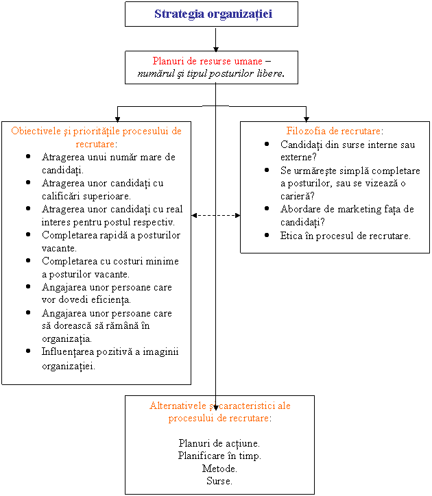 Figura - Decizii strategice în procesul de recrutare. (Sursa: Burloiu P. Managementul Resurselor Umane, Editura Lumina Lex, Bucuresti, 1997)