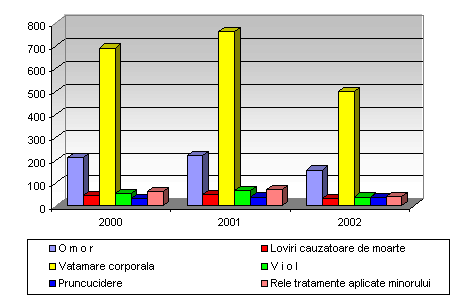 Īn 2002, violentele īn familie au reprezentat aproximativ 15% din totalul infractiunilor comise cu violenta, conditia favorizanta principala fiind consumul bauturilor alcoolice (~30% dintre infractiuni).