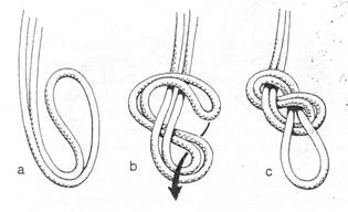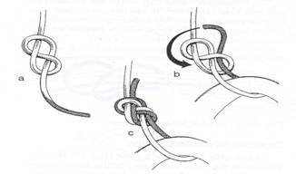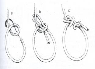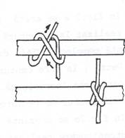 Legarea capetelor a doua corzi se poate executacu nodul pescarului simplu, fig.3.12, dar mai bine