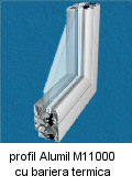 Profilele din aluminu cu bariera termica sunt tricamerale, camera exterioara si cea interioara fiind din aluminiu iar cea intermediara din material plastic, mai exact poliamida, ce are rolul de a elimina conductivitatea termica a metalului. Sistemul de garnituri in 3 straturi precum si miezul din poliamida asigura un coeficient de izoalre termica, apropiat de cel al profilelor din PVC. Si in cazul aluminiului este deosebit de importanta calitatea feroneriei folosite, calitate ce se va traduce printr-o utilizare usoara si mai ales indelungata a tamplariei folosite.