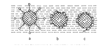 Fig. 5.4 Aderenta intre piatra de ciment si agregat a-structura betonului proaspat; b-structura betonului intarit. |