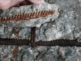 Prin fisurile si porii betonului, acizii ajung la armaturi unde produc o coroziune expansiva a otelului, conducand la fisurarea si dizlocarea stratului de acoperire.