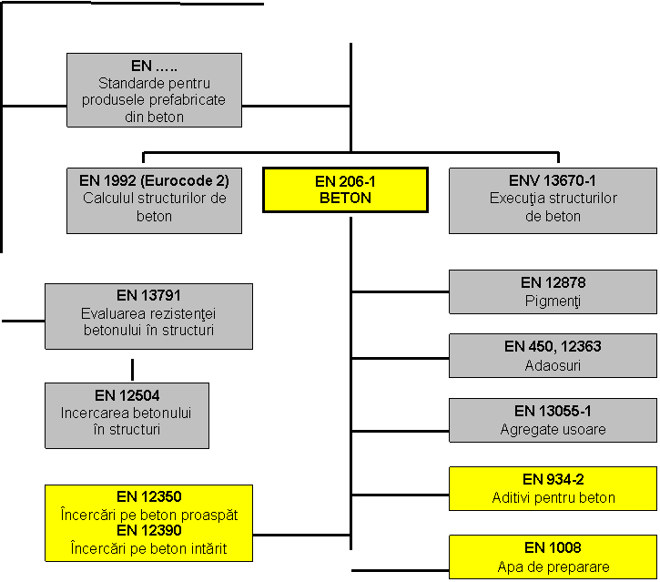 Relatiile intre standardul de beton EN 206-1 si standardele privind conceptia si executia structurilor, materialele componente ale betonului si incercarile de laborator specifice acestora.