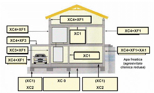 modul de incadrare a elementelor/structurilor din beton in clase de expunere (“X”) la actiunea mediului inconjurator. Responsabilitatea alegerii corecte a combinatiei de clase de expunere la care este supus elementul sau structura respectiva apartine proiectantului, in functie de conditiile specifice ale amplasamentului;