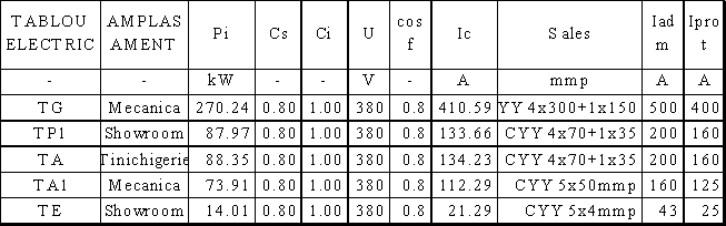 Circuitul va fi alimentat cu conductori din cupru 3xFY 1,5mmp (Ima = 13 > I ). Īn tabloul electric circuitul va fi protejat cu un īntreruptor automat de 10 A.