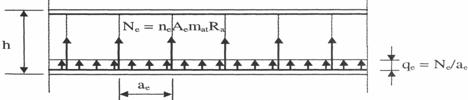 Acest efort se echilibreaza cu efortul qe, uniform distribuit pe distanta ae dintre doi etrieri consecutivi, conform figurii 5: