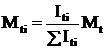 Calculul la torsiune cu incovoiere a elementelor din beton armat cu sectiune compusa din mai multe dreptunghiuri (de exemplu, sectiune in forma de T, dublu T), se face prin descompunerea in sectiuni dreptunghiulare componente si prin repartizarea momentului de torsiune Mt fiecarui dreptunghi in parte. Repartitia momentului de torsiune se face proportional cu momentul de inertie la torsiune al fiecarui dreptunghi (fig. 8.8):