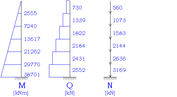 Tabel de calcul a momentelor incovoietoare si a fortei taietoare in perete: