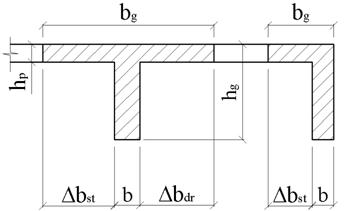 daca planseele sunt prefabricate sau turnate ulterior peretilor si nu se realizeaza conlucrarea placii cu grinda, sectiunea se considera dreptunghiulara ca în fig.5.5 cu înaltimea hr pâna sub placa planseului;