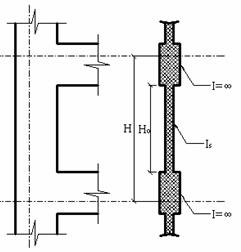 (deschiderii libere) golului, iar portiunile laterale (L - lo) se admit a fi indeformabile (aria sectiunii se considera în calcul infinita). c) În cazul peretilor cu grinzi de cuplare înalte în raport cu înaltimea nivelului, se va tine seama de variatia sectiunii montantilor, considerând ca deformabile zonele cuprinse între grinzile de cuplare (lumina), iar în rest indeformabile (fig.5.8b). |