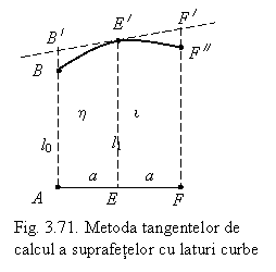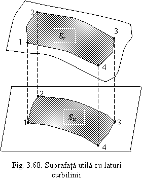În cazul când suprafata are un contur limitat de linii curbe (fig. 3.68) calculul ariei utile a acesteia se poate face prin: