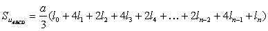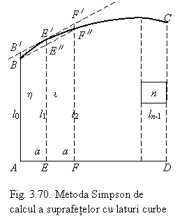 Suprafata se împarte în n parti de înaltime egala, n numar par. Ser înlocuiesc arcele curbe oarecare cu arce de parabola duse prin trei puncte succesive, tinând cont de faptul ca: