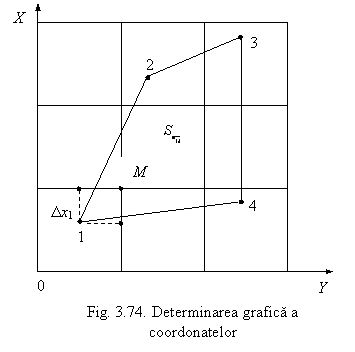 Daca stabilirea coordonatelor punctelor de pe contur se face pe plan, grafic, fiecare punct se va raporta la cel mai apropiat colt de caroiaj, în raport cu care i se stabilesc coordonatele (vezi capitolul Planuri si harti din manualul mentionat mai sus).