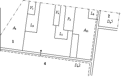 În fig. nr.3.85. este reprezentat trapezul L - 34 - a6 - A - a - 2 - I la scara 1:5000 care cuprinde parti si perimetre ale localitatii ... principal si localitatii ... secundar. Numarul foii de plan (trapez) 2, cu suprafata foii de plan 565 ha, 8650 m2. Golul si plinul se descompune la rândul lor în masive pe detaliile existente pe plan, care au un caracter permanent, cum sunt: ape curgatoare, diguri, canale, cai ferate, drumuri, strazi, ulite sau chiar limite de categorii de folosinta.