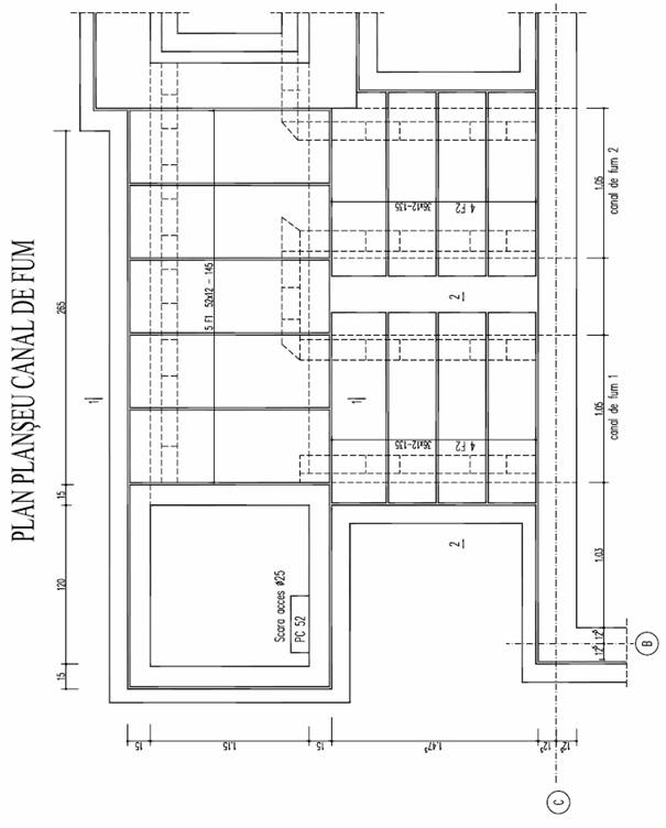 Caminul de vizitare si canalul de fum corespunzator cosului de fum expus in capitolul 11 au necesitat un planseu prefabricat realizat din elemente prefabricate din beton armat de tip fasii pline.