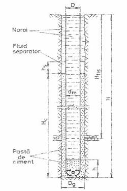 Fig. 2. Pozitia fluidelor la sfarsitul cimentarii unei coloane |