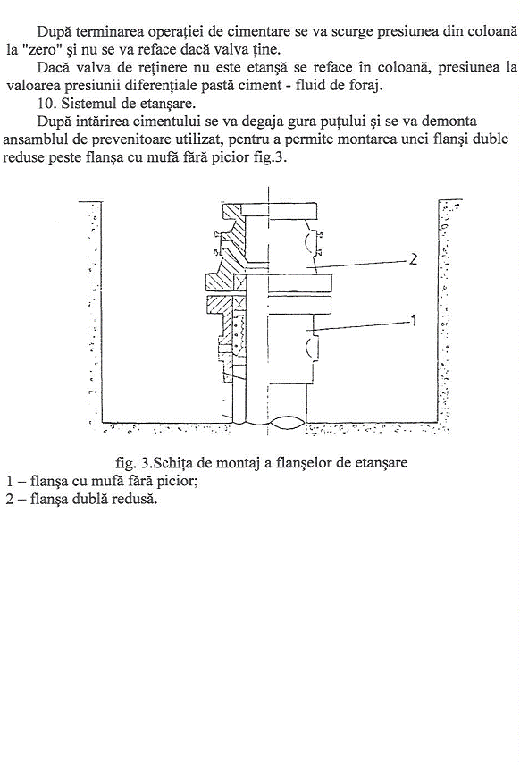 Dupa intarirea cimentului se va degaja gura putului pentru a permite montarea flansei de etansare prin insurubare in cepul primului burlan de 12 3/4 in prezentat in fig,2..