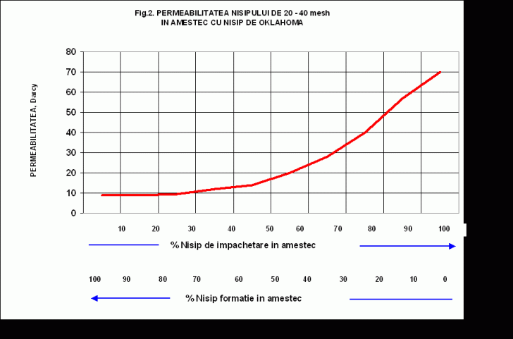 Un aspect important aratat īn Fig. 2 este ca permeabilitatile mai mici decāt acelea pentru nisipul din formatiune au fost masurate īn prezenta unei concentratii mici de nisip de injectie. īn aceste cazuri, existau mai putine spatii de pori pentru curgerea fluidului decāt la nisipul 100% si astfel a fost masurata o permeabilitate mai mica. Aceste date au fost masurate cu un nisip din formatiune foarte permeabil (10 darcies).