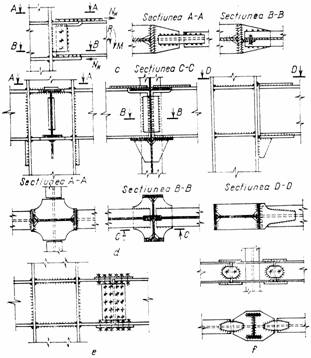- pentru stalpi cu sectiune dublu T, se creeaza o placa de rezemare inferioara de lungime mare si o eclisa de continuitate la partea superioara (momentul incovoietor se transmite prin cuplu de fortelungime de cordoane de sudura);