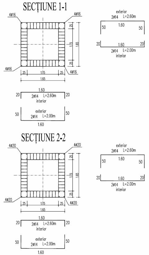 Reprezentarea armarii se face in plan vertical si in sectiuni orizontale.