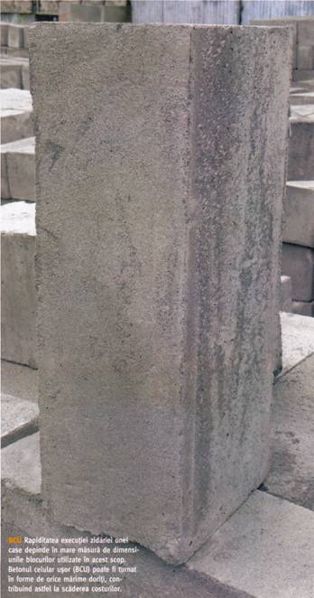 Acestea sunt betonul celular autoclavizat (BCA), despre care ati mai putut citi si în primul numar al publicatiei noastre, si betonul celular usor (BCU), care datorita numeroaselor lui caracteristici pozitive, nu trebuie omis.