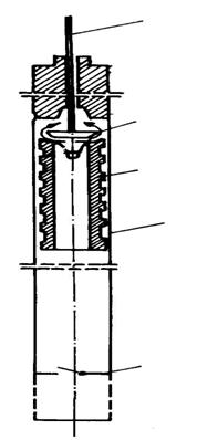 a2. Lingura de curatit cu piston (fig.4.24) asigura o curatire mai eficienta si mai rapida a dopurilor compacte din sondele cu nivel mic (sub 100 m) decat lingurile obisnuite cu clapa.