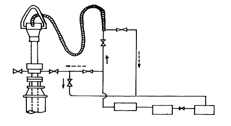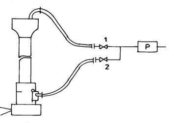 Teava de refulare a pompei sau a agregatului de pompare este prevazuta cu doua furtunuri, avand fiecare cate un ventil (1 si 2). Aceste ventile sunt racordare la teava de refulare (fig. 4.28).