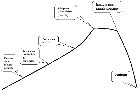 Noi consideram ca durata de viata a unui proiect īncepe cu initierea (definirea) proiectului si se īncheie cu activitatile impuse de lichidarea (postutilizarea) lui. Aceasta pozitie este justificata de necesitatea analizei integrale a proiectului īn vederea stabilirii costurilor globale solicitate de acesta. De multe ori proiecte cu cheltuieli initiale (proiectare si productie) reduse impun īn exploatare cheltuieli care depasesc cu mult "economiile" īnregistrate īn primele etape. Īn plus, analiza comportarii īn exploatare a proiectelor furnizeaza informatii foarte utile pentru perfectionarea proiectelor viitoare.