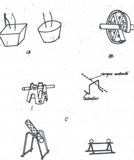 a) In atelier colacii sunt pusi pe vartelnita 3;vergeaua se indreapta si taie la lungimea dorita la masina de indreptata si taiat4;barele taiate se depoziteaza in rastelul 5;de aici se duc si se fasoneaza manual pe masa de lucru 7 sau la masina de fasonat 6 si se depoziteazain rastelul 5;apoi sunt duse fie pe platforma exterioara fie la masina de sudat prin puncte 8,fie la zona de ansamblu a carcaselor 13,fie in depozitul de armaturi finite 17;de la masina de sudat prin puncte, armatura este dusa in depozitul de armatura finita 17;barele introduse in atelier se indreapta la bancul 9;se taie dimensiunile dorite cu dispozitivul de taiat 11 si se depoziteaza in rastelul 5;cupoanele ramase se sudeaza cap la cap 10;apoi barele se transporta fie pe platforma exterioara fie in depozitul de armatura finita 17,fie la zona de asamblare a carcaselor 13,fie la masina de fasonat 6 sau bancul de fasonat 12;de aici se duc fie in depozitul 17,fie in zona de asamblare a carcaselor 13.